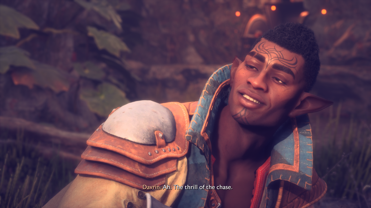 Unlike Taash, Davrin feels like a more grounded example of someone navigating two cultural identities between his Dalish roots and his role within the more secular Grey Wardens.